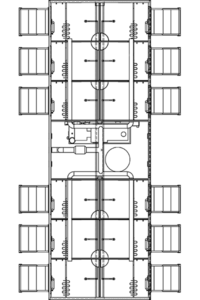 Badevognen er ideel til store arrangementer, hvor mange mennesker har brug for at bade. Den indeholder 12 separate bruserum der hver er udstyret med et brusebad med tempostop, en sæbehylde og et bruseforhæng. Der er udtrækstrapper under hver dør for nem adgang. Traileren bruger et oliefyr til vandopvarmning.Konstruktion