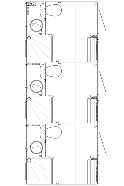- 3 bænke, 3 spejle, 3 toiletpapirholdere, 3 poseklemmer, 3 sæbehylder