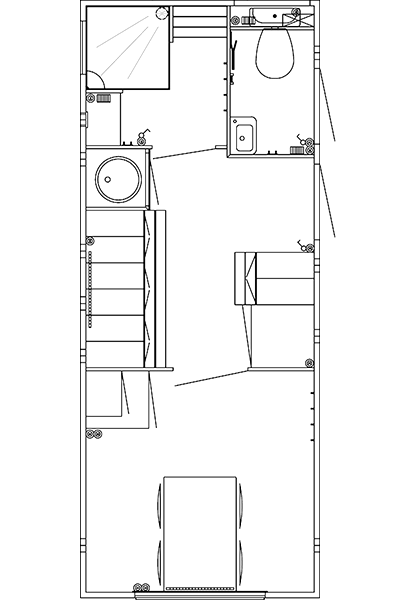 Mandskabsvognen giver dig et rent spiseområde i nærheden af byggepladser med mulighed for bad og omklædning. Vognen indeholder et spiserum, et omklædningsrum med stålskabe, tørreskab og bænk, et vandskyllende toilet med kværn samt et særskilt baderum med bruser, hylder og bænk.