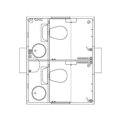 Toiletvognen til 2 personer er perfekt, når der er behov for en lille og fleksibel toiletløsning. Hvert rum indeholder et toilet, en håndvask og et spejl. Du kan vælge mellem 4 forskellige toilettyper. Har du behov for flere toiletter, tilbyder vi også større toiletvogne med plads til 4 - 10 personer.