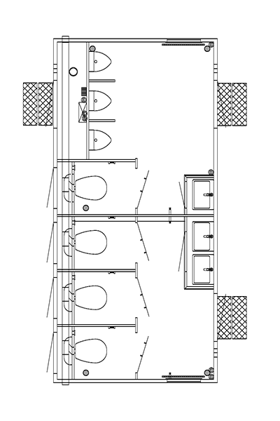 Vores mellemstore toiletvogn tilbyder en god balance mellem kapacitet og fleksibilitet. Den indeholder en kombination af toiletter og urinaler. Vognen har et stilrent design, som giver brugeren en følelse af mere plads, renlighed og komfort. Den anvender LED lysbånd for et behageligt hvidt og energivenligt lys. Vognen er isoleret med XPS-skum og har radiatorer og ventilation, som gør den behagelig at opholde sig i hele året rundt.