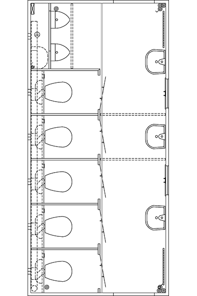 Vores mellemstore toiletvogn tilbyder en god balance mellem kapacitet og fleksibilitet. Vognen leveres standard i tre størrelser og indeholder en kombination af toiletter og urinaler, bortset fra 730 modellen, som kun har toiletter. Vognen har en flytbar skillevæg, så den kan inddeles i to sektioner.